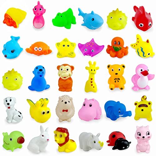 Bathtime just got WAY more fun with this massive set of 100 adorable animal bath toys! Your little ones will be excited for bath time with these colorful floating friends that include all sorts of zoo animals. The toys measure between 1.97 to 3.15 inches - perfectly sized for small hands to grasp without any swallowing risks. Made from quality PVC material that's soft, sturdy, and lightweight with smooth edges that won't hurt delicate skin. The best part? They make clear, fun squeaking sounds when squeezed, which helps attract kids' attention and makes bath time enjoyable rather than stressful. Beyond just baths, these versatile toys are great for pool parties, water tables, classroom activities, or zoo-themed birthday parties. They're educational too - kids can learn about different animals and colors while developing their grip and motor skills. The set is plenty big enough for multiple kids to play together or for rotating toys to keep things fresh. Since they're so affordable in bulk, you won't stress if one gets lost or worn out. They float perfectly and are easy to clean after use. Seriously, these might just turn dreaded bath time into the highlight of your child's day!