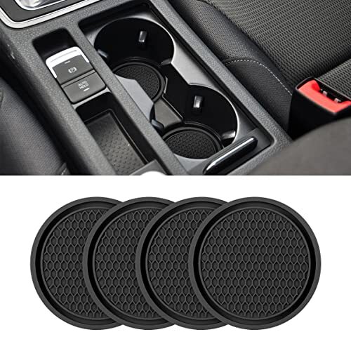 Tired of cleaning sticky, stained cup holders? These car cup holder coasters are the simple solution you've been looking for. You get 4 black coasters that measure 2.75 inches in diameter and about 1.9 inches deep - they fit perfectly in most cars, trucks, and SUVs. Made from eco-friendly PVC material, they don't have that chemical smell some car accessories have. They're waterproof, heat-resistant, and have a non-slip surface so your drinks stay put even on bumpy roads. But here's the best part - they protect your original cup holders from scratches, spills, and general wear and tear. When they get dirty, just pop them out and wash them with water or wipe them clean. They're not just for cars either - use them at home as regular coasters for your coffee table or dining table. Installation takes zero seconds - just drop them into your cup holders. It's one of those cheap accessories that actually makes your life easier and keeps your car interior looking newer longer. If you drink coffee, soda, or water in your car, these are pretty much a must-have. Your cup holders will stay clean, and you'll never have to scrub out dried spills again!