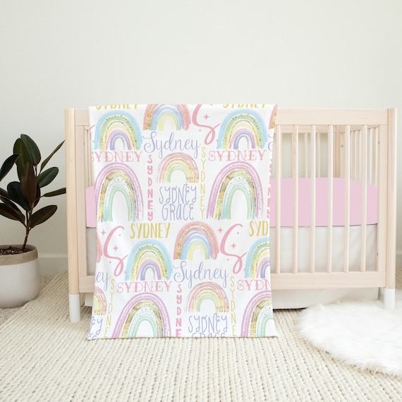 • Order Teddy Bear Baby Blanket Personalized Baby Blanket With Name - Teddy Bear Balloon Rainbow Design 30x40 Inches Custom Name Baby Blanket