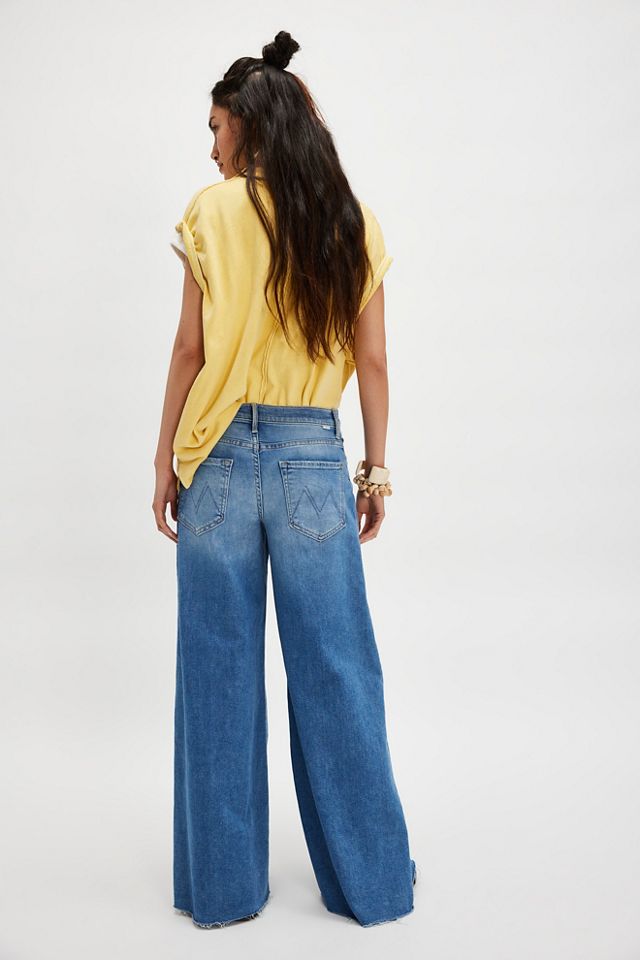 • Order Mothers Jeans MOTHER Women's The Swisher Sneak Fray Jeans - Wide Leg Raw Hem Denim Mid Rise Jeans