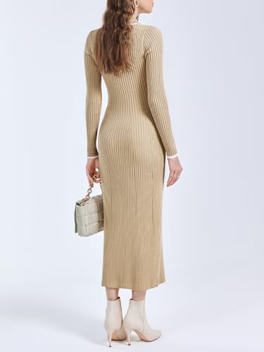 Saodimallsu Women's Striped Sweater Dress - Long Sleeve Crochet Knit Bodycon