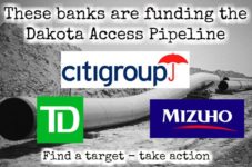 The Camp of the Sacred Stones and Red Warrior Camp, currently defending against the construction of the Dakota Access Pipeline, are calling on allies across the world to take action from September 3rd to 17th on the pipeline companies and financial institutions working to build the pipeline. More information on… Continue reading